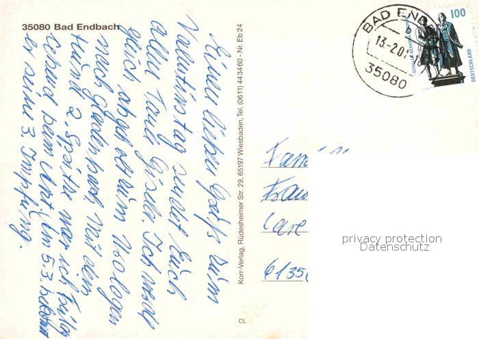 72751615 alte Postkarte Bad Endbach Teilansicht postalisch gelaufen Erhaltung siehe scans [AndreD76] KatCode: 11110006534003