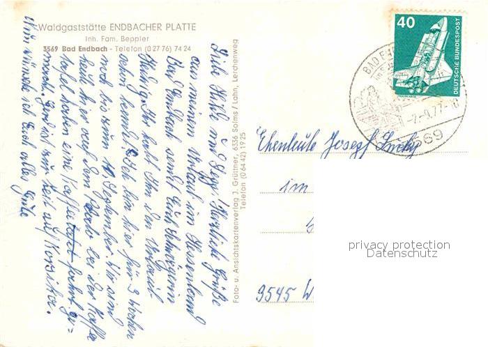 72673140 alte Postkarte Bad Endbach Waldgaststaette Endbacher Platte postalisch gelaufen Erhaltung siehe scans [AndreD76] KatCode: 11110006534003