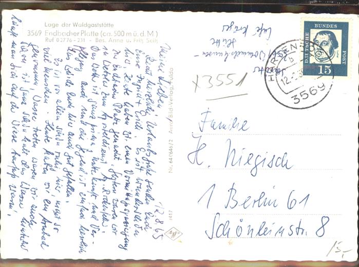 41327584 Bad Endbach Waldgaststätte Endbacher Platte KatCode 11110006534003