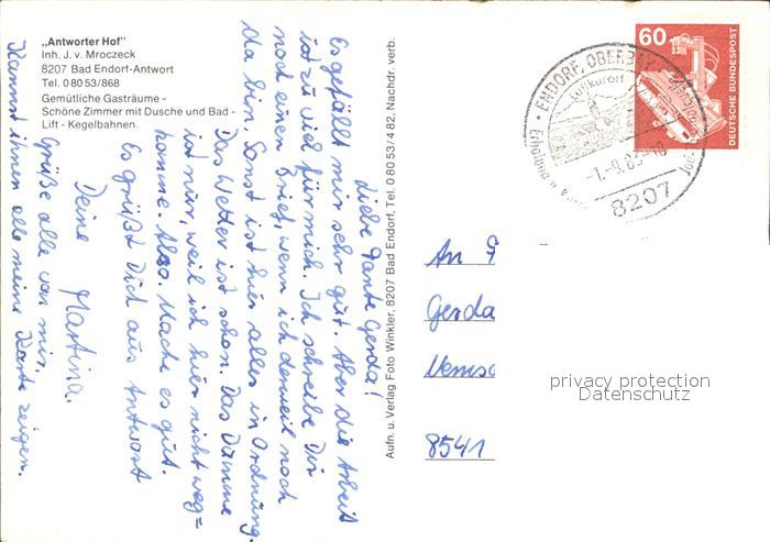 72449641 alte Postkarte Bad Endorf Antworter Hof Hotel Pension postalisch gelaufen Erhaltung siehe scans KatCode: 11110009187128