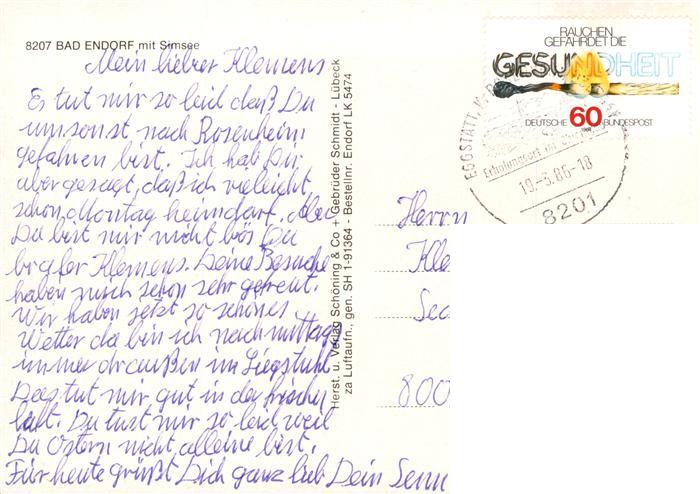 73879000 alte Postkarte Bad Endorf Fliegeraufnahme mit Simsee postalisch gelaufen Erhaltung siehe scans [WerneD78] KatCode: 11110009187128