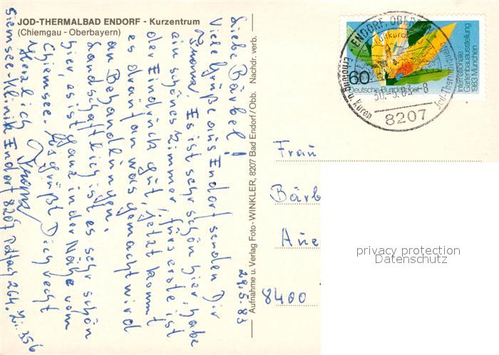 73157871 alte Postkarte Bad Endorf Jod Thermalbad Kurzentrum postalisch gelaufen Erhaltung siehe scans [FriedD77] KatCode: 11110009187128