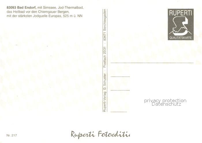 73740111 alte Postkarte Bad Endorf mit Simssee und Chiemgauer Bergen Fliegeraufnahme postalisch gelaufen Erhaltung siehe scans [FriedD77] KatCode: 11110009187128