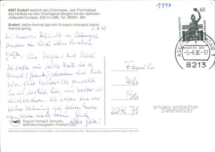 72522704 alte Postkarte Bad Endorf Panorama Jod Thermalbad Kampenwand Hochries postalisch gelaufen Erhaltung siehe scans KatCode: 11110009187128