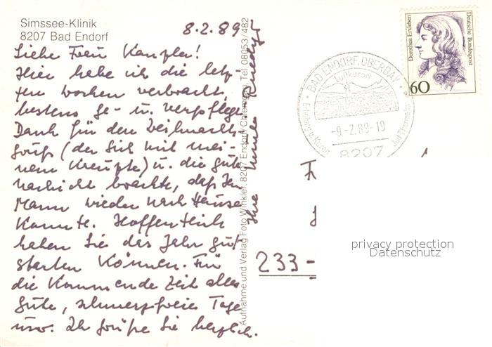 73090203 alte Postkarte Bad Endorf Simssee-Klinik postalisch gelaufen Erhaltung siehe scans [PaolaD17] KatCode: 11110009187128