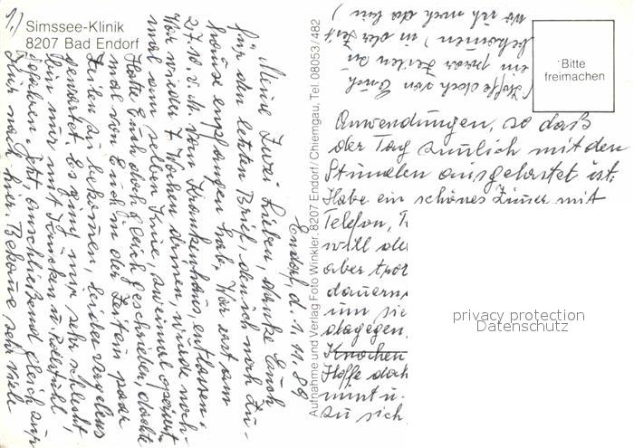 72616390 Bad Endorf Simssee Klinik postalisch nicht gelaufen Erhaltung siehe scans [FriedD77] KatCode: 11110009187128