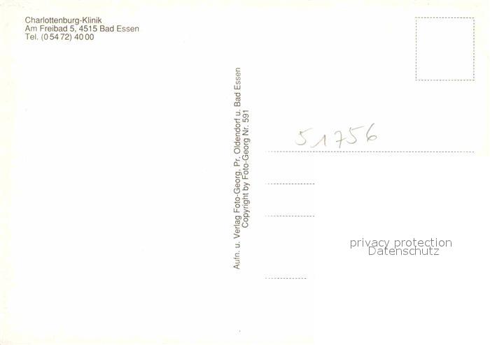 72855049 Bad Essen Charlottenburg Klinik postalisch nicht gelaufen Erhaltung siehe scans [AndreD76] KatCode: 11110003459003