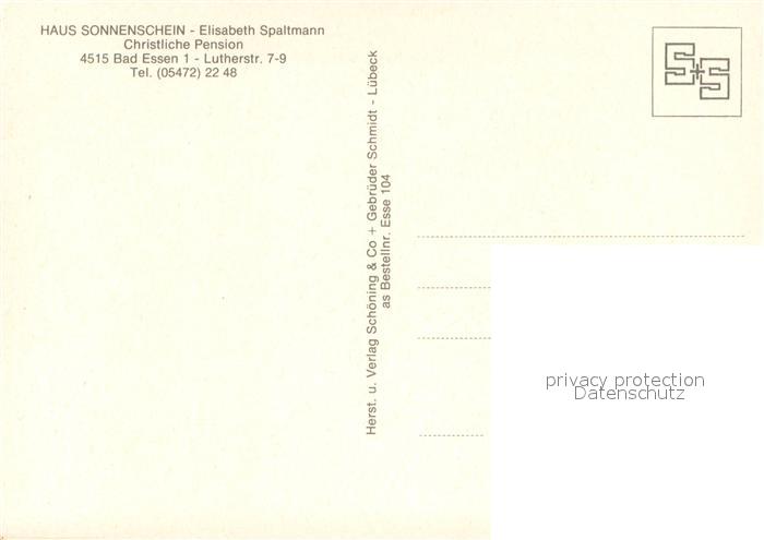 73616344 Bad Essen Haus Sonnenschein Gastraeume Garten postalisch nicht gelaufen Erhaltung siehe scans [WerneD78] KatCode: 11110003459003