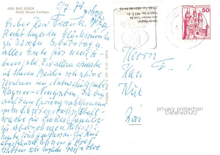 73574353 alte Postkarte Bad Essen Hotel Neues Kurhaus am Waldrand postalisch gelaufen Erhaltung siehe scans [FriedD77] KatCode: 11110003459003