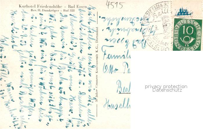 73700167 alte Postkarte Bad Essen Kurhotel Friedenshoehe postalisch gelaufen Erhaltung siehe scans [LiesaD40] KatCode: 11110003459003