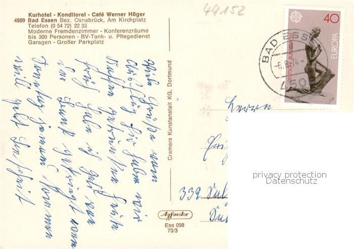 73865170 alte Postkarte Bad Essen Kurhotel Werner Hoeger Gastraeume postalisch gelaufen Erhaltung siehe scans [WerneD78] KatCode: 11110003459003