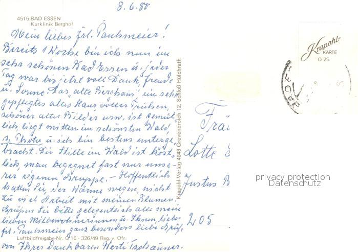 73574354 alte Postkarte Bad Essen Kurklinik Berghof Fliegeraufnahme postalisch gelaufen Erhaltung siehe scans [FriedD77] KatCode: 11110003459003