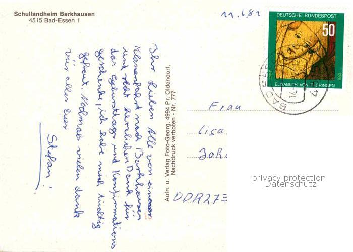 72720850 alte Postkarte Bad Essen Schullandheim Barkhausen postalisch gelaufen Erhaltung siehe scans [LiesaD40] KatCode: 11110003459003