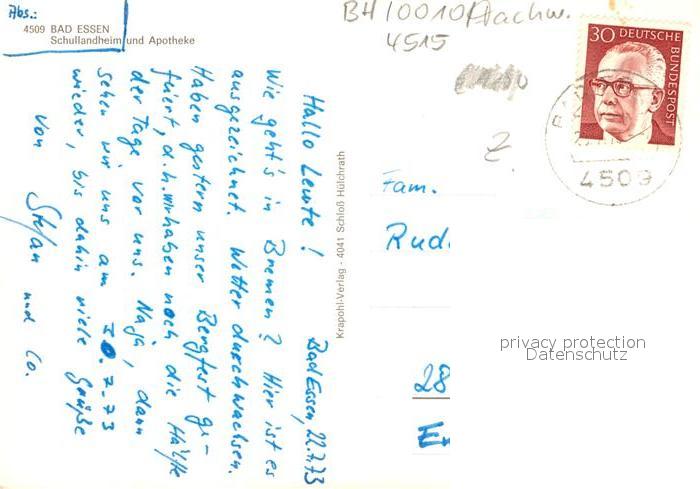 73163415 alte Postkarte Bad Essen Schullandheim und Apotheke postalisch gelaufen Erhaltung siehe scans [WerneD78] KatCode: 11110003459003