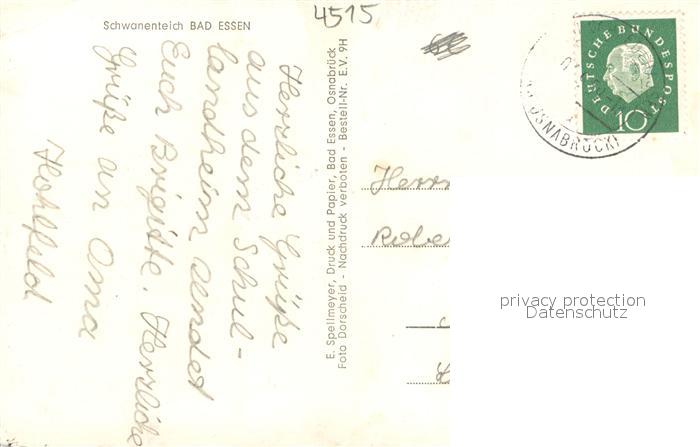 73700166 alte Postkarte Bad Essen Schwanenteich postalisch gelaufen Erhaltung siehe scans [LiesaD40] KatCode: 11110003459003