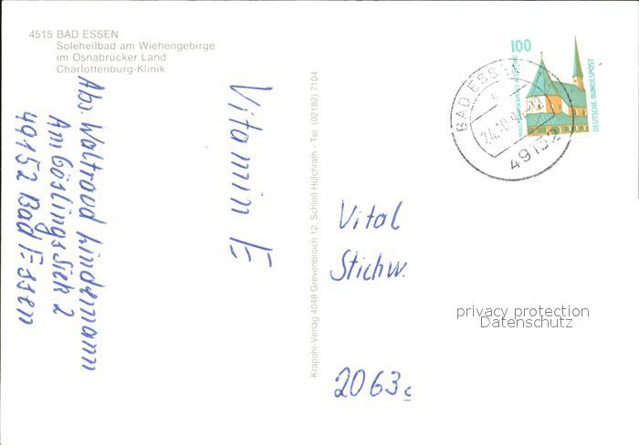 72416225 alte Postkarte Bad Essen Soleheilbad Wiehengebirge Charlottenburg Klinik postalisch gelaufen Erhaltung siehe scans KatCode: 11110003459003