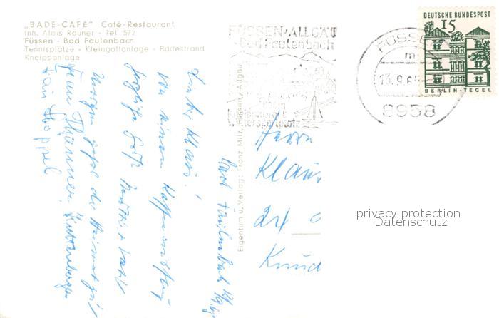 73832465 alte Postkarte Bad Faulenbach Bade-Cafe Restaurant am See Allgaeuer Alpen postalisch gelaufen Erhaltung siehe scans [FriedD77] KatCode: 11110009777129