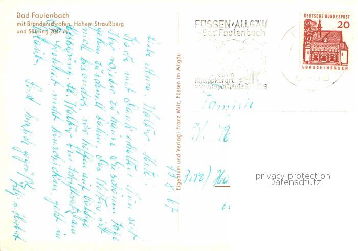 72774560 alte Postkarte Bad Faulenbach Branderschrofen Hohem Straussberg Saeuling postalisch gelaufen Erhaltung siehe scans [NatalD47] KatCode: 11110009777129
