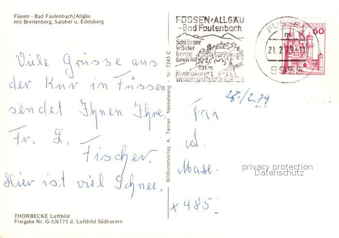 73227606 alte Postkarte Bad Faulenbach Fliegeraufnahme Breitenberg Salober Edelsberg postalisch gelaufen Erhaltung siehe scans [NatalD47] KatCode: 11110009777129