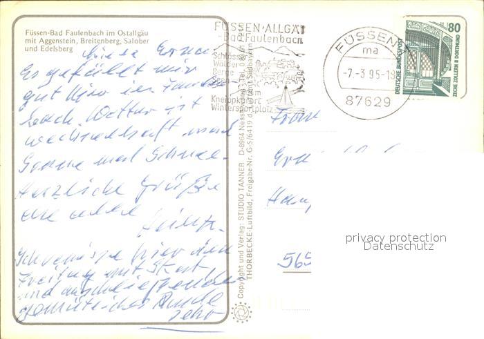 71988015 alte Postkarte Bad Faulenbach Fliegeraufnahme mit Aggenstein Breitenberg Edelsberg postalisch gelaufen Erhaltung siehe scans KatCode: 11110009777129