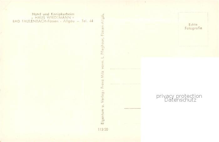 73800823 Bad Faulenbach Haus Wiedemann postalisch nicht gelaufen Erhaltung siehe scans [WerneD78] KatCode: 11110009777129