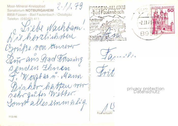 72841559 alte Postkarte Bad Faulenbach Notburgaheim postalisch gelaufen Erhaltung siehe scans [LiesaD40] KatCode: 11110009777129