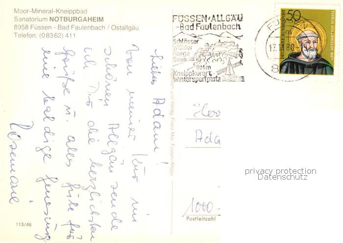 72931113 alte Postkarte Bad Faulenbach Sanatorium Notburgaheim postalisch gelaufen Erhaltung siehe scans [KathaD81] KatCode: 11110009777129