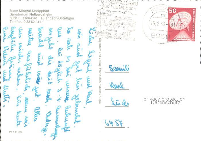 72296775 alte Postkarte Bad Faulenbach Sanatorium Notburgaheim im Winter Kneippbad postalisch gelaufen Erhaltung siehe scans KatCode: 11110009777129
