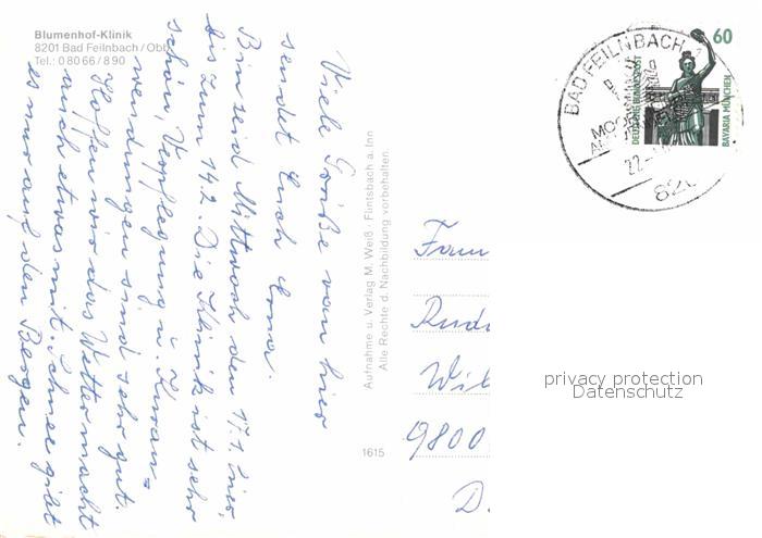 72899956 alte Postkarte Bad Feilnbach Blumenhof-Klinik postalisch gelaufen Erhaltung siehe scans [NatalD47] KatCode: 11110009187129
