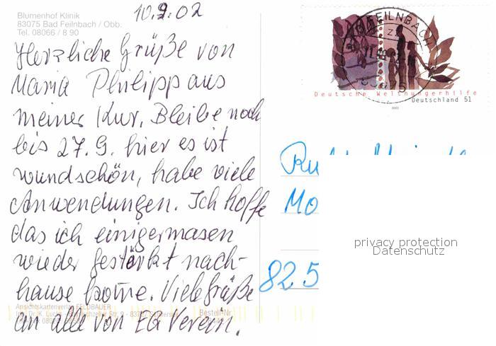 72727805 alte Postkarte Bad Feilnbach Blumenhof Klinik postalisch gelaufen Erhaltung siehe scans [LiesaD40] KatCode: 11110009187129