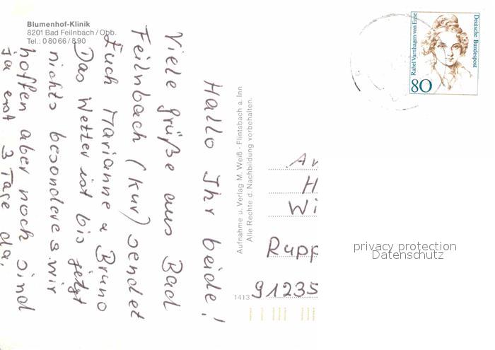 72740727 alte Postkarte Bad Feilnbach Blumenhof Klinik Fontaene postalisch gelaufen Erhaltung siehe scans [WerneD78] KatCode: 11110009187129