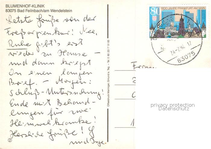 73707561 alte Postkarte Bad Feilnbach Blumenhof Klinik postalisch gelaufen Erhaltung siehe scans [WerneD78] KatCode: 11110009187129