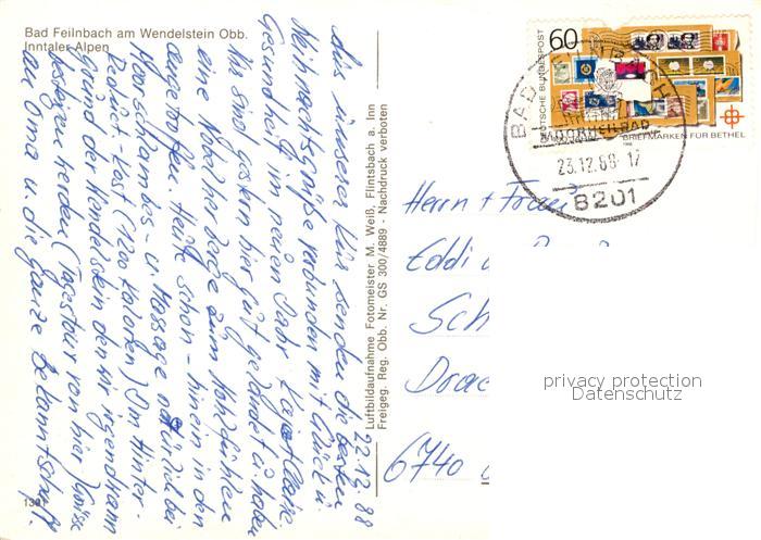 73143159 alte Postkarte Bad Feilnbach Fliegeraufnahme mit Wendelstein und Inntaler Alpen postalisch gelaufen Erhaltung siehe scans [WerneD78] KatCode: 11110009187129