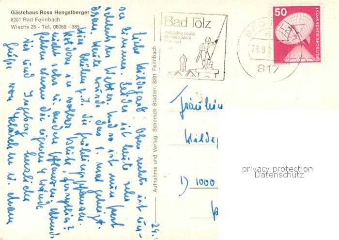 73651874 alte Postkarte Bad Feilnbach Gaestehaus Rosa Hengstberger postalisch gelaufen Erhaltung siehe scans [WerneD78] KatCode: 11110009187129