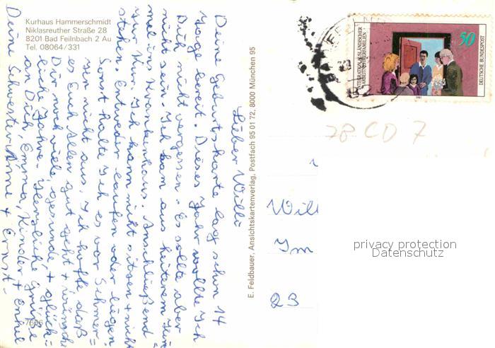 72917156 alte Postkarte Bad Feilnbach Kurhaus Hammerschmidt postalisch gelaufen Erhaltung siehe scans [NatalD47] KatCode: 11110009187129