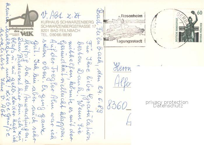 73689636 alte Postkarte Bad Feilnbach Kurhaus Schwarzenberg postalisch gelaufen Erhaltung siehe scans [WerneD78] KatCode: 11110009187129