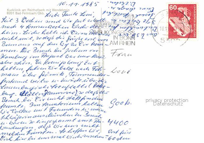 72786417 alte Postkarte Bad Feilnbach Kurklinik am Reithofpark postalisch gelaufen Erhaltung siehe scans [AndreD76] KatCode: 11110009187129