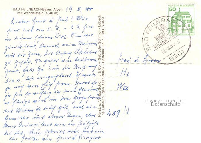 72872528 alte Postkarte Bad Feilnbach mit Blick zum Wendelstein Bayerische Alpen Fliegeraufnahme postalisch gelaufen Erhaltung siehe scans [FriedD77] KatCode: 11110009187129
