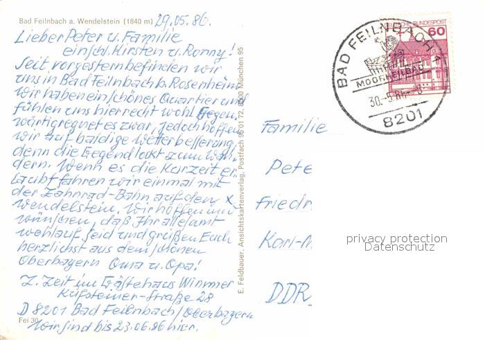 72654635 alte Postkarte Bad Feilnbach Ortspartie an der Kirche Brunnen Landschaftspanorama mit Wendelstein Bayerische Alpen postalisch gelaufen Erhaltung siehe scans [FriedD77] KatCode: 11110009187129