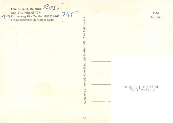 73686093 Bad Feilnbach Pension Fam Weidlich postalisch nicht gelaufen Erhaltung siehe scans [WerneD78] KatCode: 11110009187129