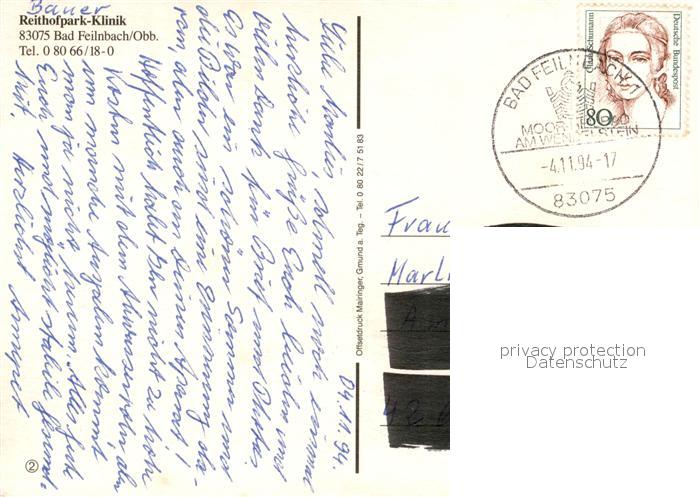73176218 alte Postkarte Bad Feilnbach Reithofpark-Klinik postalisch gelaufen Erhaltung siehe scans [NatalD47] KatCode: 11110009187129