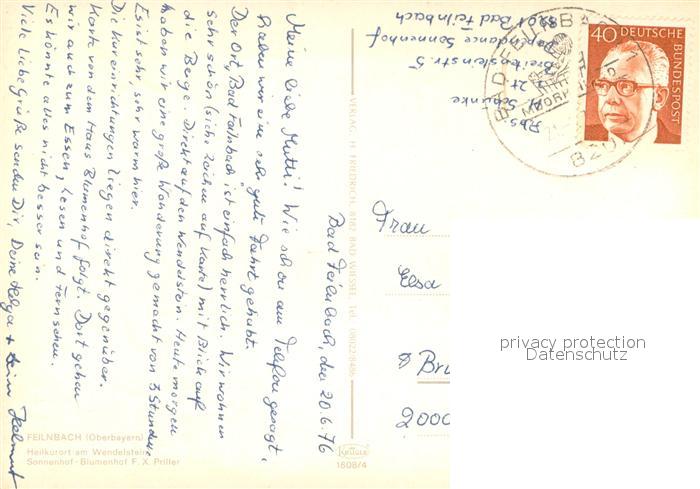 73686585 alte Postkarte Bad Feilnbach Sonnenhof Blumenhof postalisch gelaufen Erhaltung siehe scans [WerneD78] KatCode: 11110009187129