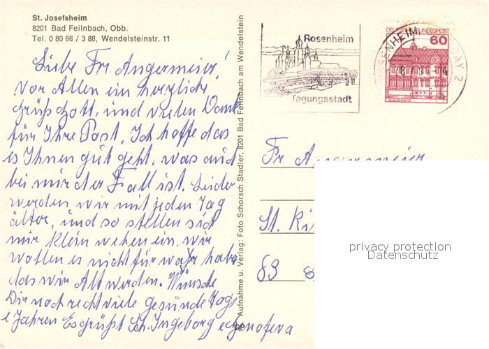 73651875 alte Postkarte Bad Feilnbach St Josefsheim postalisch gelaufen Erhaltung siehe scans [WerneD78] KatCode: 11110009187129