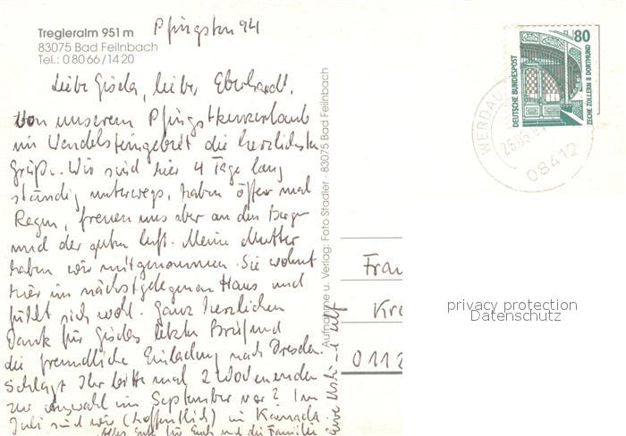 73714180 alte Postkarte Bad Feilnbach Tregleralm Terrasse postalisch gelaufen Erhaltung siehe scans [WerneD78] KatCode: 11110009187129