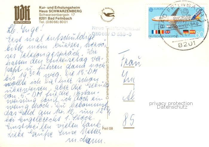 73664668 alte Postkarte Bad Feilnbach VdK Kur und Erholungsheim Haus Schwarzenberg postalisch gelaufen Erhaltung siehe scans [WerneD78] KatCode: 11110009187129