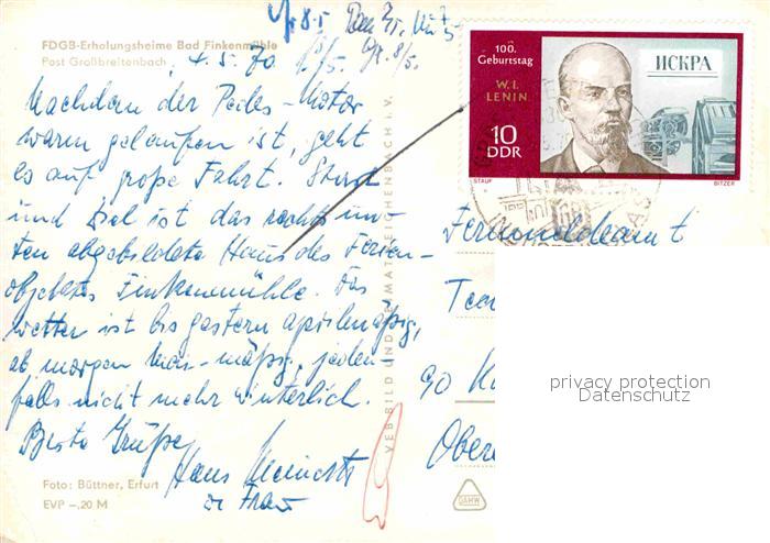 72730462 alte Postkarte Bad Finkenmuehle FDGB Erholungsheime Waldpartie postalisch gelaufen Erhaltung siehe scans [FriedD77] KatCode: 11110016070027