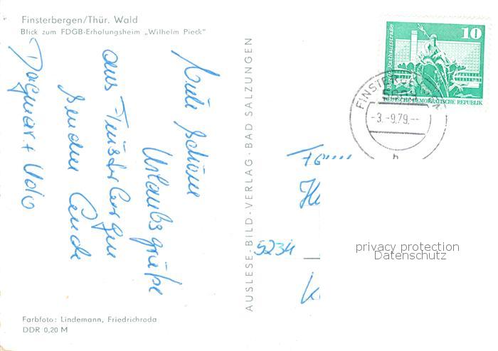 73842054 alte Postkarte Bad Finsterbergen Panorama Blick zum FDGB Erholungsheim Wilhelm Pieck postalisch gelaufen Erhaltung siehe scans [FriedD77] KatCode: 11110016067017