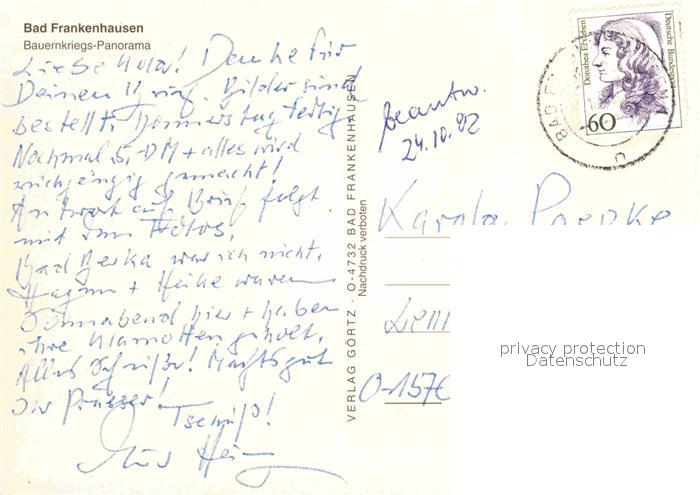72836425 alte Postkarte Bad Frankenhausen Bauernkriegs-Panorama postalisch gelaufen Erhaltung siehe scans [PaolaD17] KatCode: 11110016065003