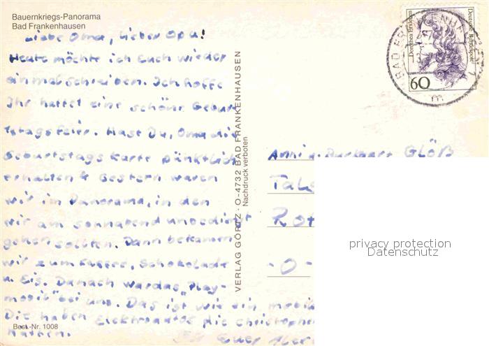 72868808 alte Postkarte Bad Frankenhausen Bauernkriegspanorama postalisch gelaufen Erhaltung siehe scans [FriedD77] KatCode: 11110016065003