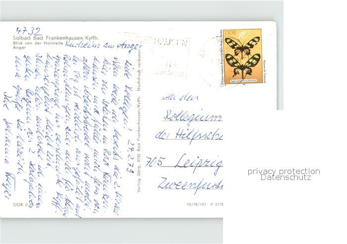 72391079 alte Postkarte Bad Frankenhausen Blick von der Hainleite Anger postalisch gelaufen Erhaltung siehe scans KatCode: 11110016065003
